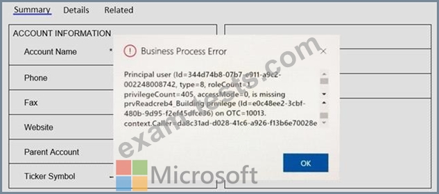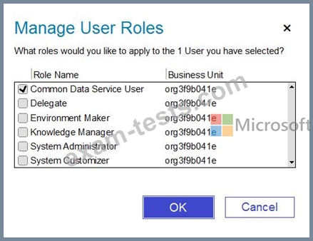 You also check the privileges for that role as shown in the Common Data Service User Security Role exhibit. (Click the Security Role tab.)