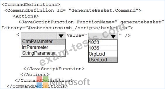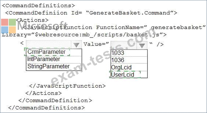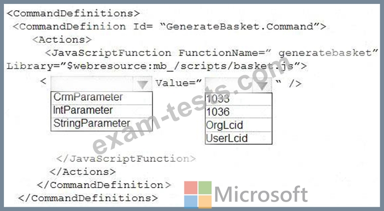How should you complete the CommandDefinition node? To answer, select the appropriate options in the answer area.