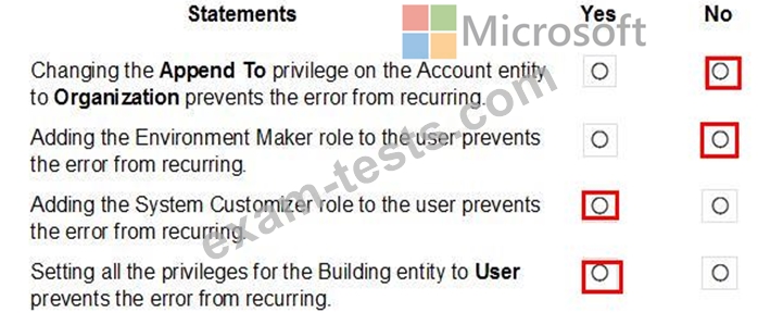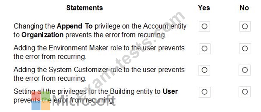 For each of the following statements, select Yes if the statement is true. Otherwise, select No.