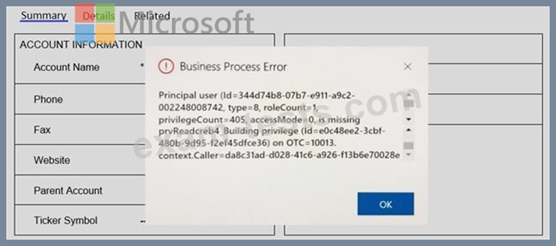 You run a real-time workflow that assigns an account you own to another user. You receive the error message as shown in the Error Message exhibit. (Click the Error Message tab.)