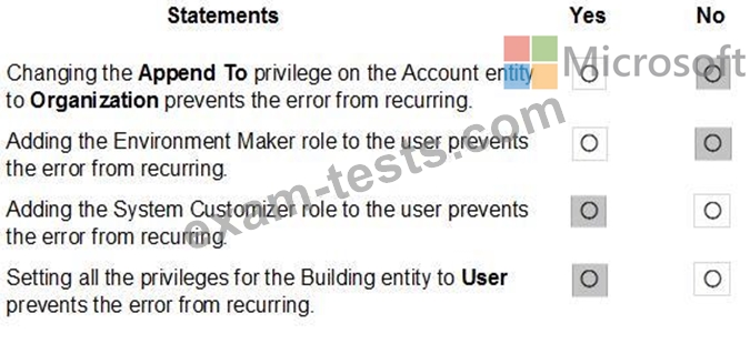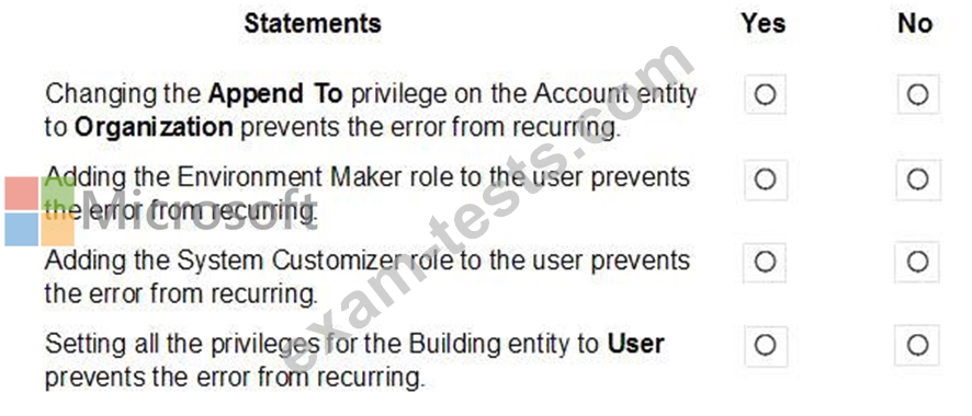 For each of the following statements, select Yes if the statement is true. Otherwise, select No.