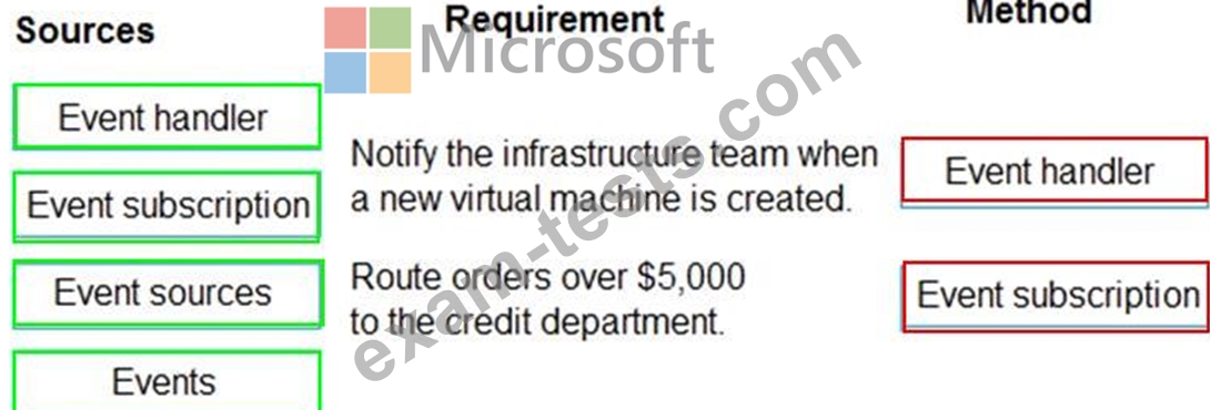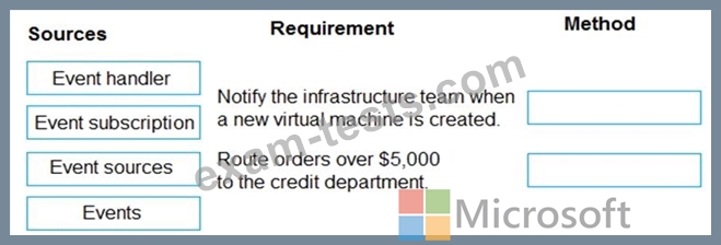 Which method should you use for each requirement? To answer, drag the appropriate methods to the correct requirements. Each method may be used once, more than once, or not at all. You may need to drag the split bar between panes or scroll to view content.