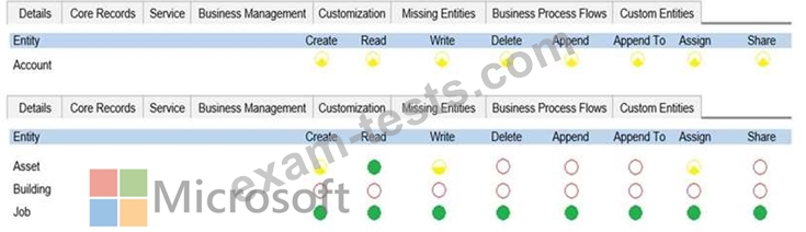 You have a model-driven app that uses the Common Data Service (CDS). You create three custom entities that are in many-to-one parental relationships with the Account entity.