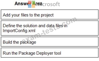 You have a model-driven app that consists of two solutions. The solutions include settings and reference dat a. You plan to move the solutions, app settings, and reference data from a development environment to a production environment.