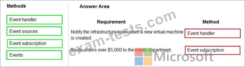 Which method should you use for each requirement? To answer, drag the appropriate methods to the correct requirements. Each method may be used once, more than once, or not at all. You may need to drag the split bar between panes or scroll to view content.