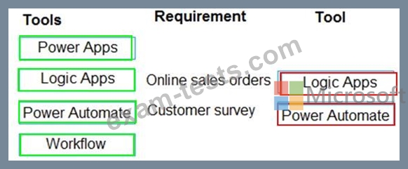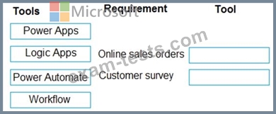 Which platform tools should you recommend? To answer, drag the appropriate tools to the correct requirements. Each tool may be used once, more than once, or not at all. You may need to drag the split bar between panes or scroll to view content.