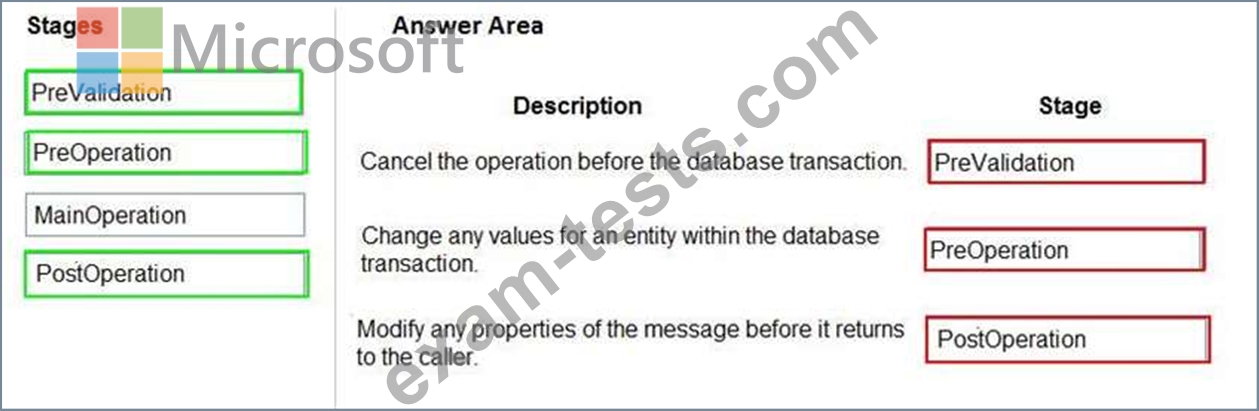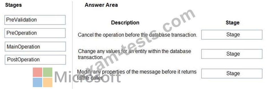Which stage should you associate with each description? To answer, drag the appropriate stages to the correct descriptions. Each stage may be used once, more than once, or not at all. You may need to drag the split bar between panes or scroll to view content.