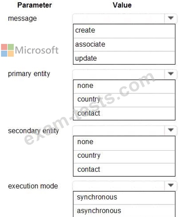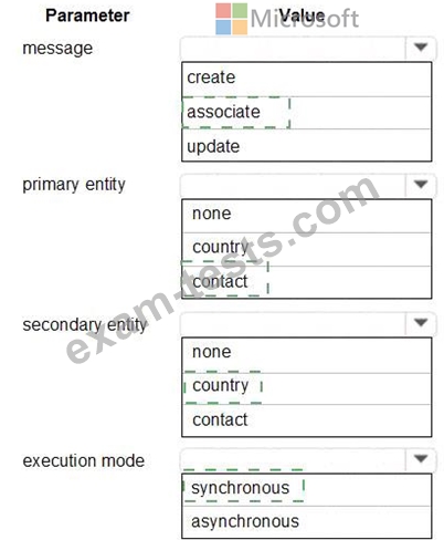 Which value should you apply for each parameter? To answer, select the appropriate options in the answer area.