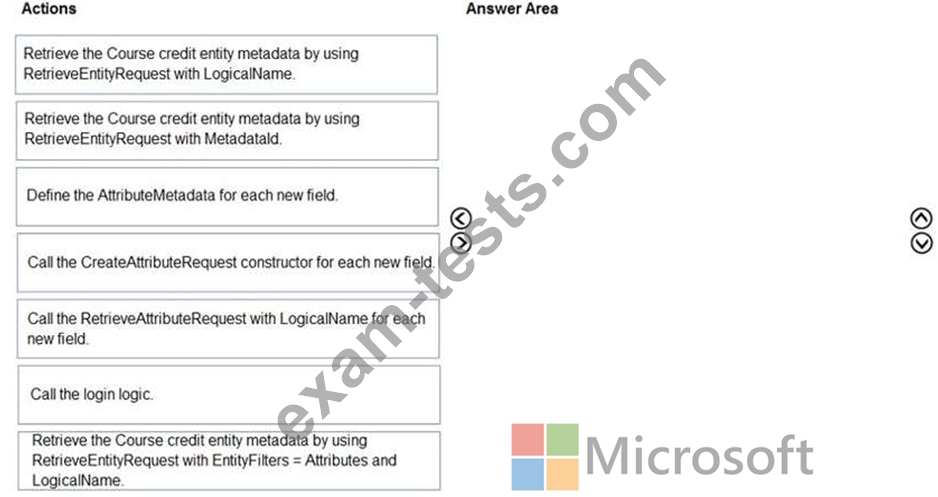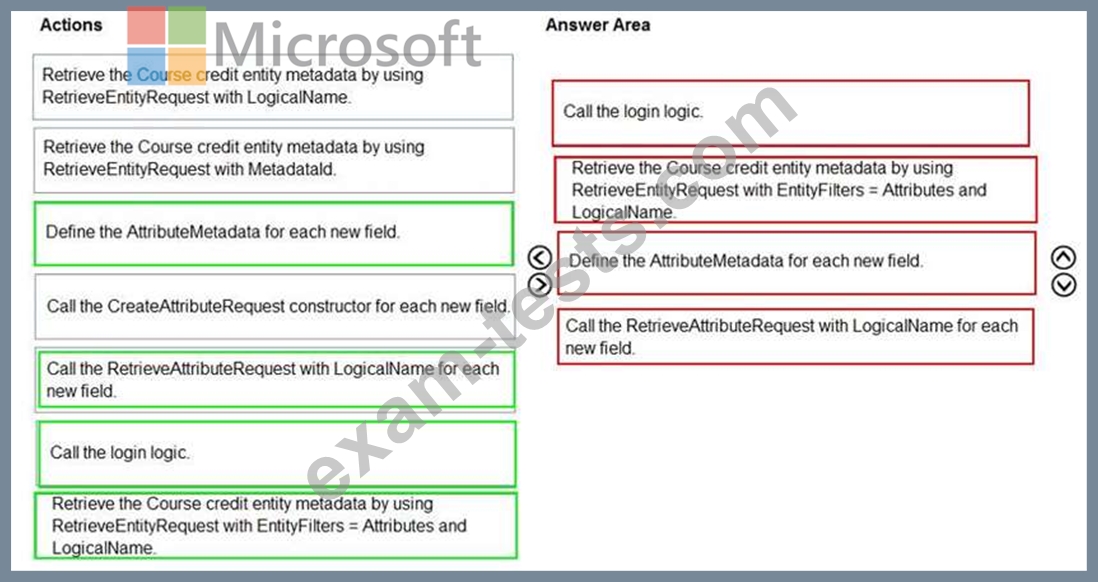 Five high schools test a custom app from AppSource. They provide feedback that the Course credit entity should include additional fields that cover information shared by the schools.