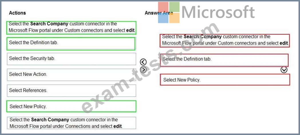 Which three actions should you perform in sequence? To answer, move the appropriate actions from the list of actions to the answer area and arrange them in the correct order.