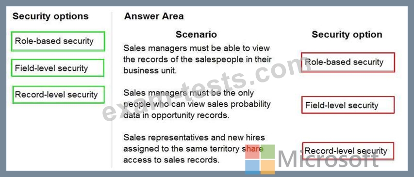 Which security options should you use? To answer, drag the appropriate security options to the correct scenarios. Each security option may be used once, more than once, or not at all. You may need to drag the split bar between panes or scroll to view content.