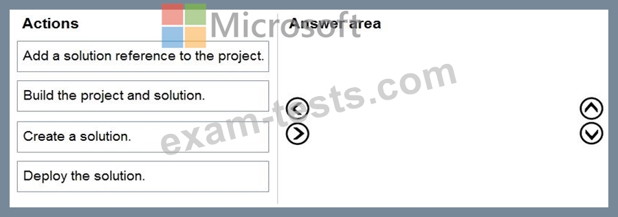 Which four actions should you perform in sequence? To answer, move all actions from the list of actions to the answer area and arrange them in the correct order.