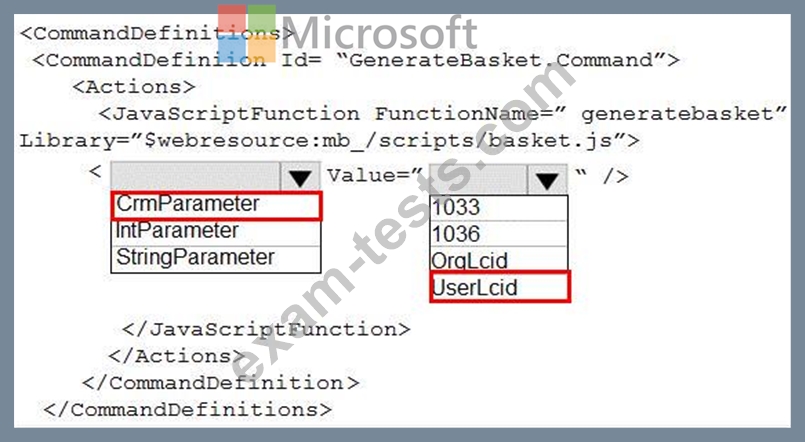 How should you complete the CommandDefinition node? To answer, select the appropriate options in the answer area.