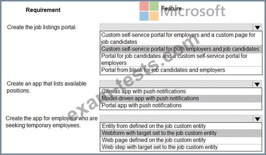 Which features should you implement? To answer, select the appropriate options in the answer area.