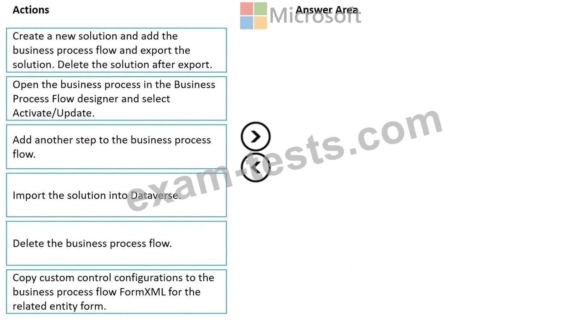 Which four actions should you perform in sequence? To answer, move the appropriate actions from the list of actions to the answer area and arrange them in the correct order.