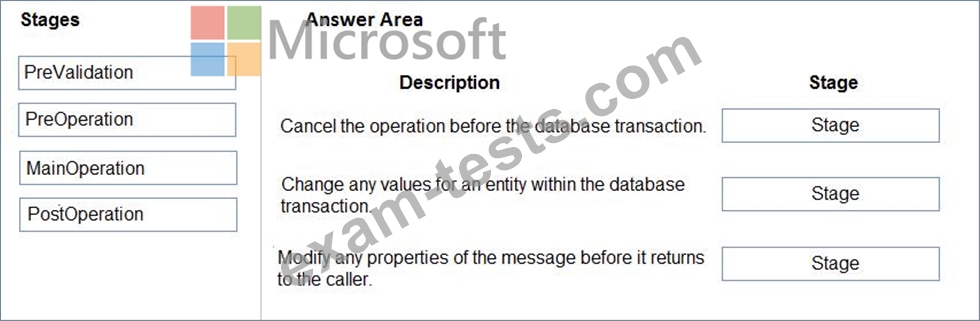 Which stage should you associate with each description? To answer, drag the appropriate stages to the correct descriptions. Each stage may be used once, more than once, or not at all. You may need to drag the split bar between panes or scroll to view content.