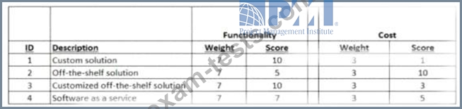 A company uses a prioritization range of 1-10. in which 10 represents the highest or best. According to the information from the table, which option should the business * analyst recommend?