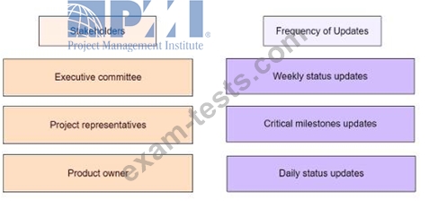 Match the stakeholders on the left with the appropriate frequency for updates.