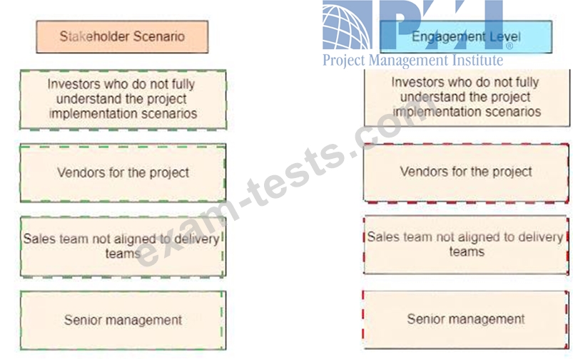 Drag each stakeholder scenario on the left to the correct engagement level on the right.