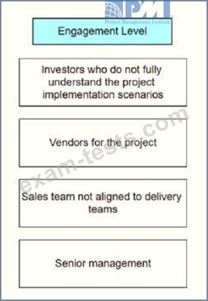 A project manager of a large company needs to categorize the stakeholders' involvement at the beginning of a project initiated by the board of directors. The sales and delivery teams are internal teams.