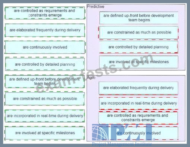 Drag the items on left side to the matching term within the correct project.