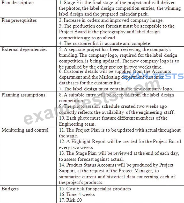 Using the Project Scenario and the Extract from Stage Plan for stage 3 provided as additional intonation for this question in the Scenario Booklet, answer the following 5 questions.