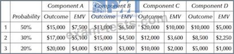 Assume you are putting together for the Portfolio Review Board several options for consideration of potential components and current components. You are using an approach with different probabilities to determine outcomes and EMV. Which of the following would you recommend realizing Components A and B are new, while C and D are in progress: