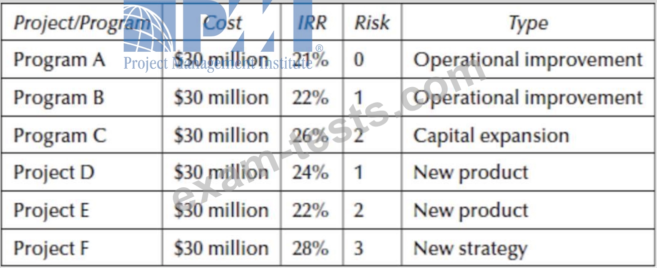 Assume three of the programs and projects can be added to the portfolio when the Board meets. Your recommendation is to select: