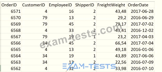 The data architect needs to create a KPI that displays the average amount of orders per customer. This aggregated field should be added to the existing orders table Which script should the data architect use?