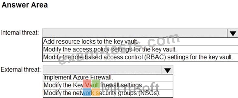 What should you recommend for each threat? To answer, select the appropriate options in the answer area.