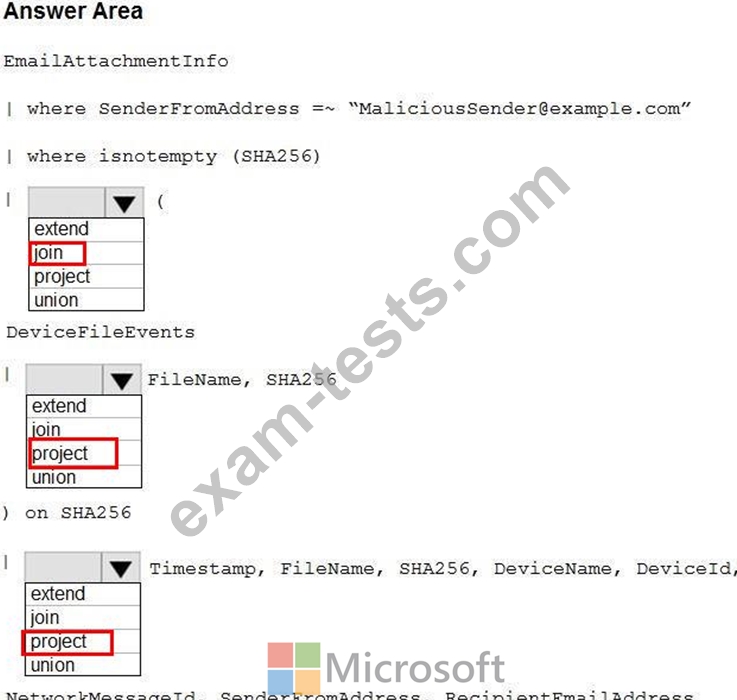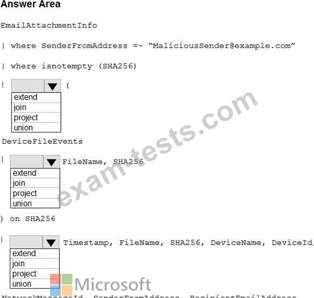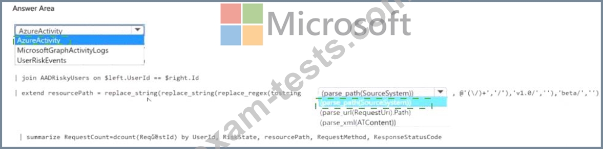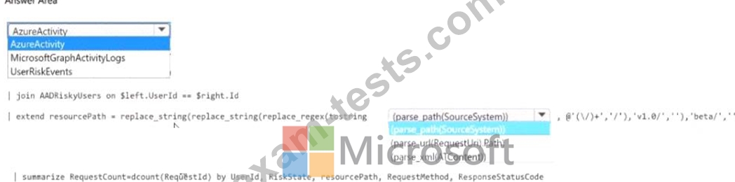 How should you complete the KQL query? To answer, select the appropriate options in the answer area.