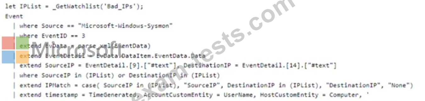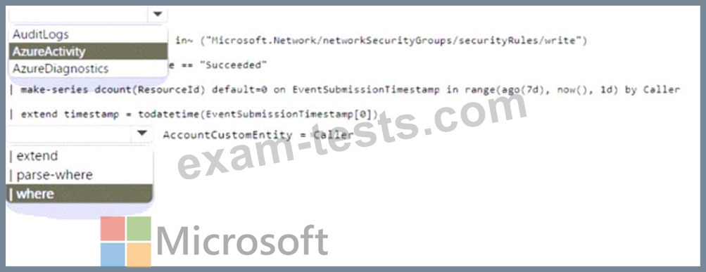 * Automatically associates the security principal with an Microsoft Sentinel entity How should you complete the query? To answer, select the appropriate options in the answer area. NOTE: