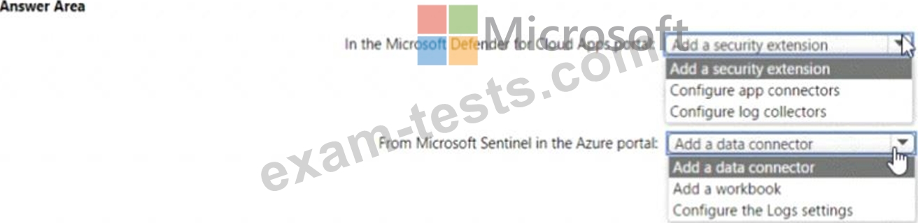 You need to configure the Microsoft Sentinel integration to meet the Microsoft Sentinel requirements. What should you do? To answer, select the appropriate options in the answer area. NOTE: Each correct selection is worth one point.