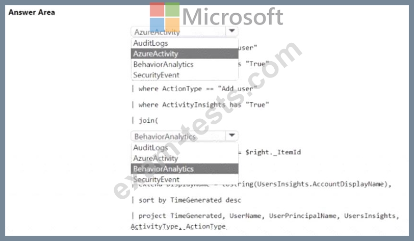 How should you complete the query? To answer, select the appropriate options in the answer area.