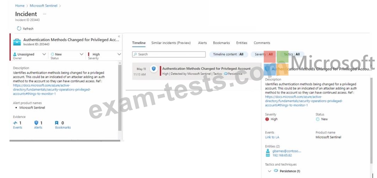 A Microsoft Sentinel incident is generated as shown in the following exhibit.