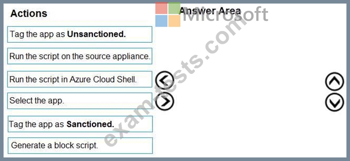 Which four actions should you perform in sequence? To answer, move the appropriate actions from the list of actions to the answer area and arrange them in the correct order.
