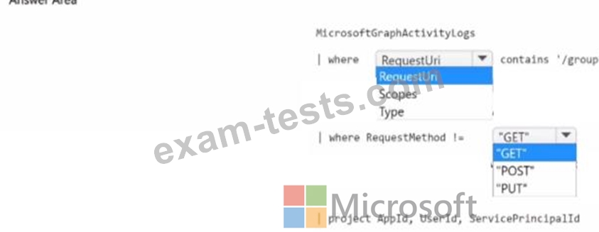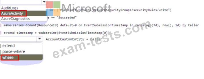 * Automatically associates the security principal with an Microsoft Sentinel entity How should you complete the query? To answer, select the appropriate options in the answer are a. NOTE: Each correct selection is worth one point.