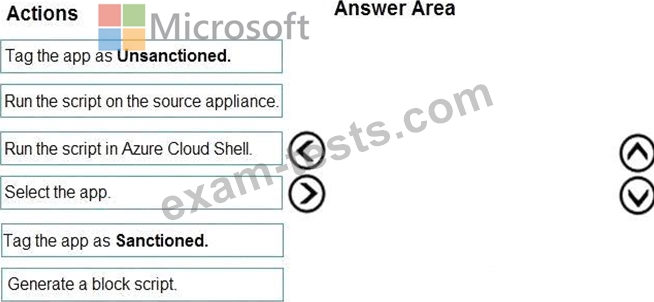 Which three actions should you perform in sequence? To answer, move the appropriate actions form the list of actions to the answer area and arrange them in the correct order.