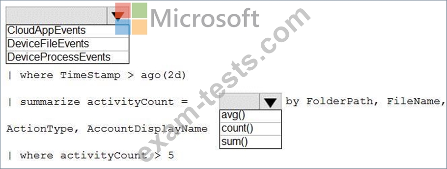 How should you complete the query? To answer, select the appropriate options in the answer area.