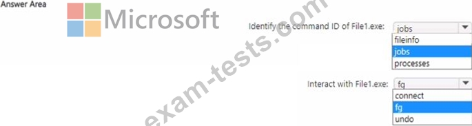 You have a Microsoft 365 subscription that uses Microsoft Defender for Endpoint Plan 2 and contains a Windows device named Device 1. You initiate a live response session on Device1 and launch an executable file named File1.exe in the background. You need to perform the following actions: