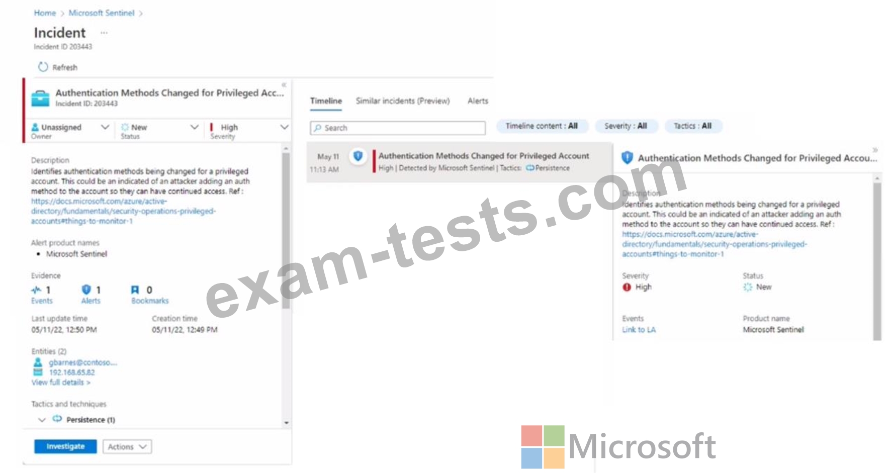 A Microsoft Sentinel incident is generated as shewn in the following exhibit.