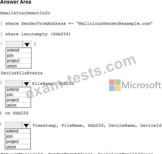 How should you complete the query? To answer, select the appropriate options in the answer area.
