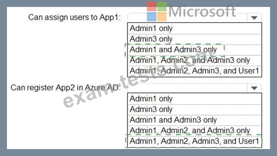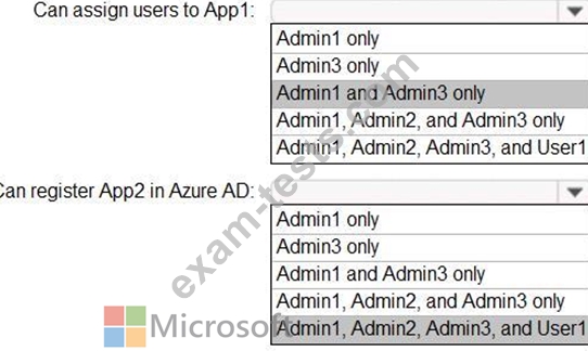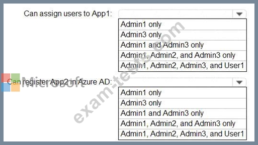 You need to identify who can assign users to App1, and who can register App2 in Azure AD.