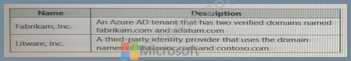 Users at Fabrikam and Litware use ail then respective domain names for email addresses.