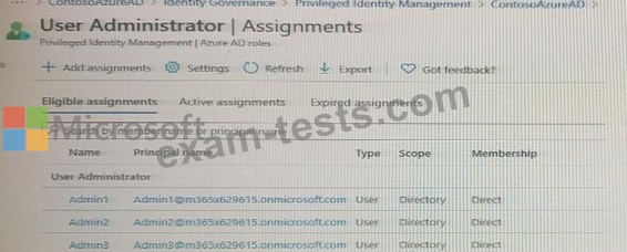 You view the User administrator role assignments as shown in the Rote assignments exhibit. (Click the Role assignments lab.)