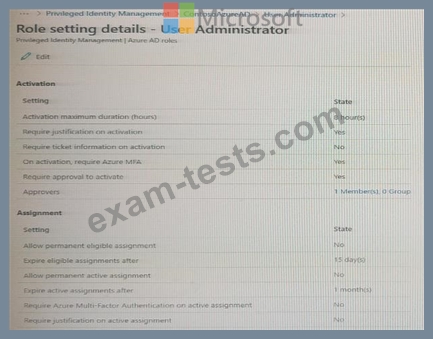 You view the User administrator role settings as shown in the Role setting details exhibit. (Click the Role setting details tab.)