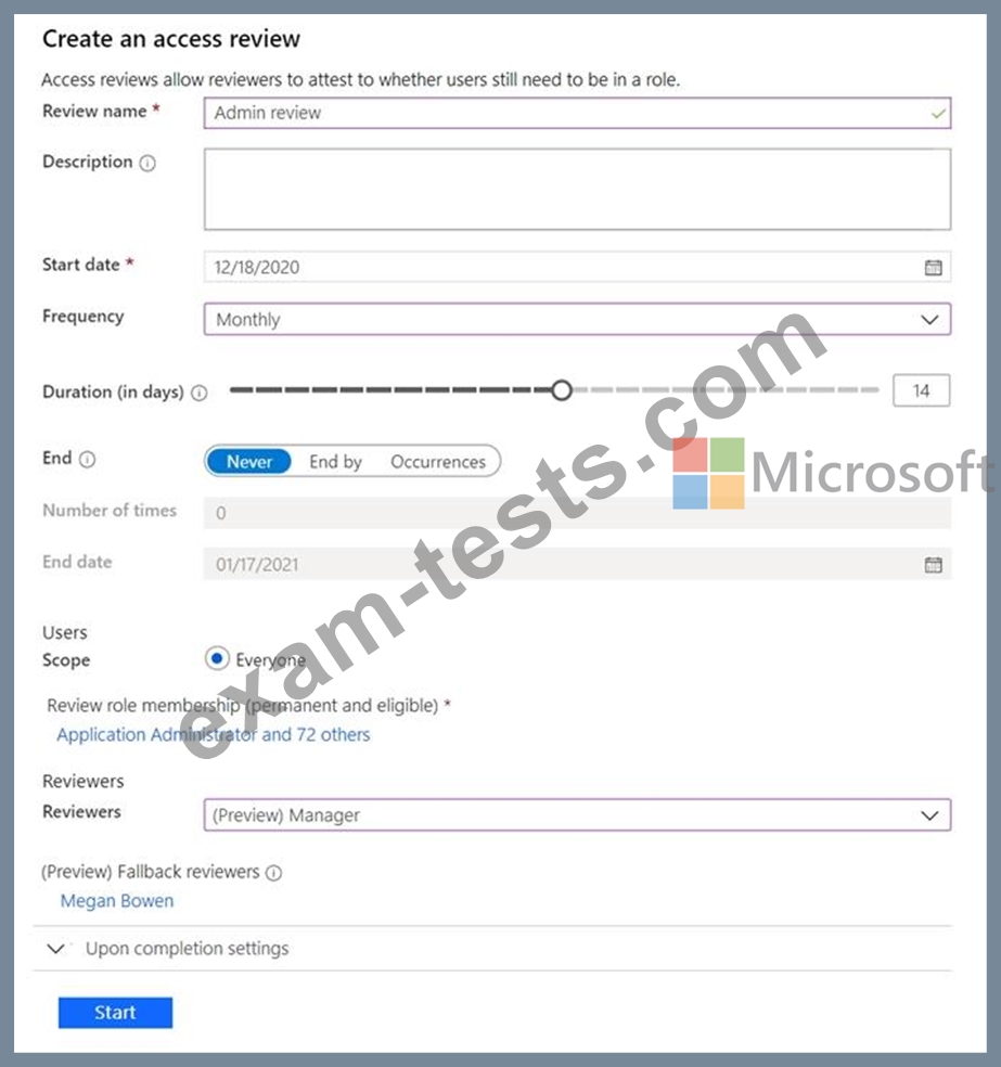 You create the access review shown in the exhibit. (Click the Exhibit tab.)