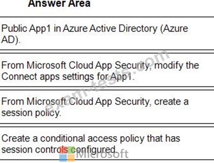You need to enable real-time session-level monitoring of App1 by using Microsoft Cloud app Security.