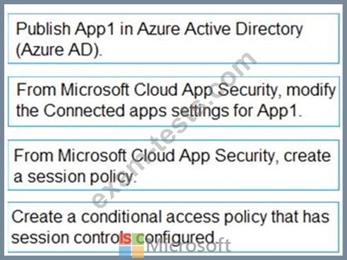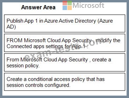 You need to enable real-time session-level monitoring of App1 by using Microsoft Cloud app Security.