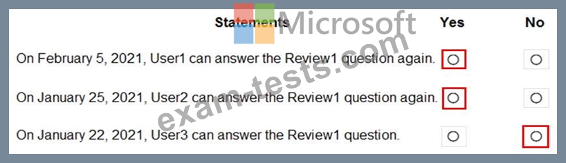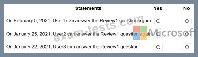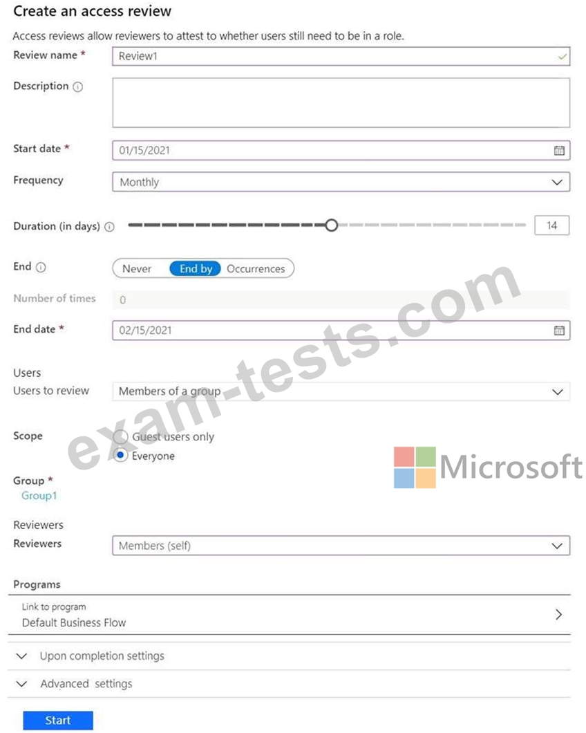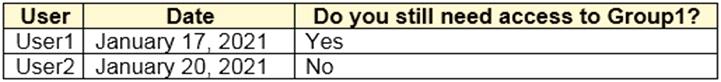On January 15, 2021, you create an access review as shown in the exhibit. (Click the Exhibit tab.)